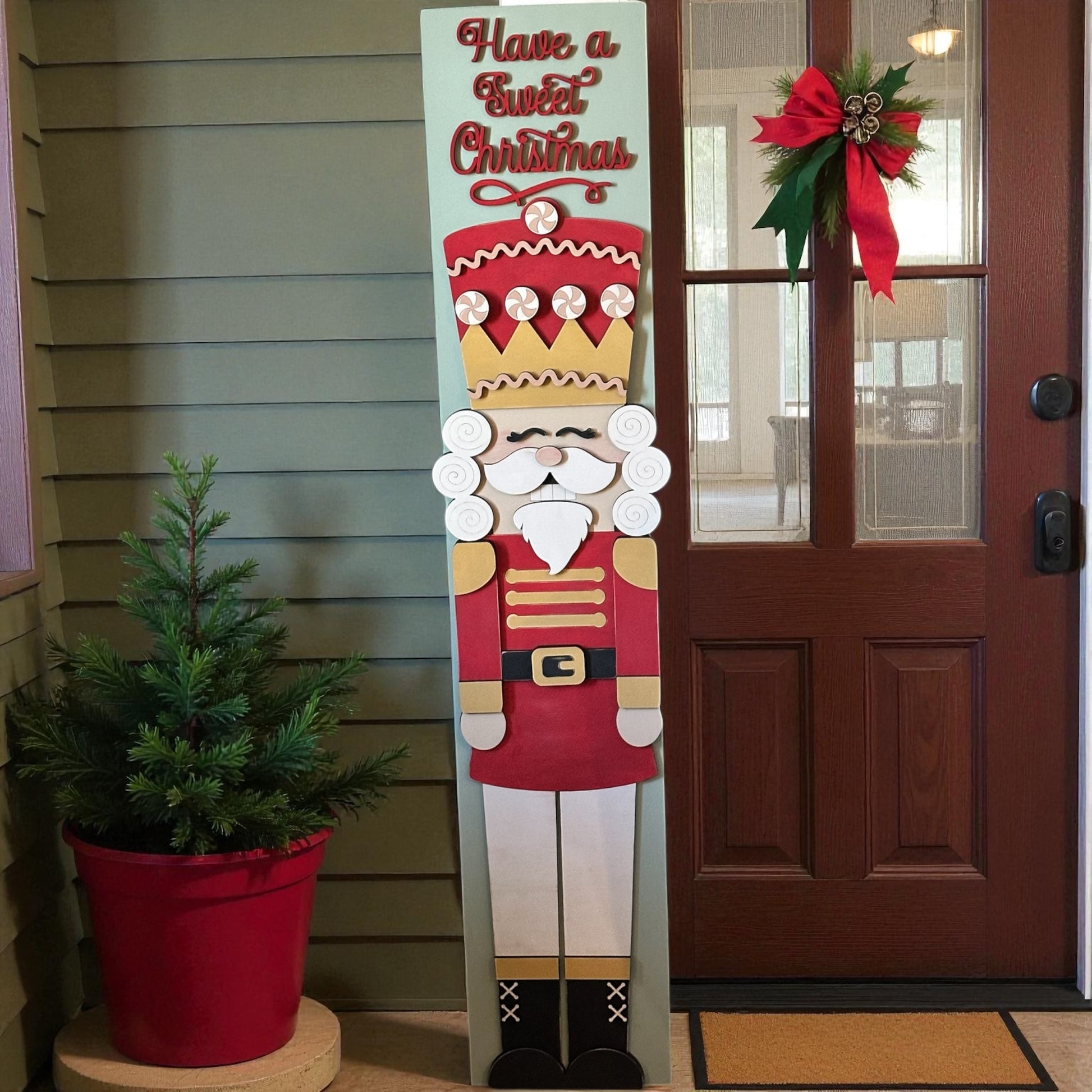 Experience a sweet Christmas with our Nutcracker Porch Leaner. This festive décor piece will add a touch of holiday spirit to your porch or entryway. Crafted with high-quality materials, this Nutcracker features intricate details and classic colors that are sure to delight all who see it. Transform your home into a winter wonderland with our Nutcracker Porch Leaner.